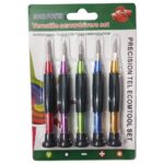 این مجموعه شامل 5 عدد پیچ گوشتی با سری های متفاوت 2 سو ، 4 سو و ستاره ای می باشد که برای تعمیرات تلفن های همراه ، ساعت و وسایل ریز بسیار عالی و کاربردی است ، جنس سری از نوع استیل و بدنه فلز و ساخت کشور چین است .