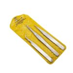 جنس ست پنس سه تایی فلزی استیل بوده و دارای کیف کوچک پلاستیکی با جایگاه جداگانه برای هر پنس است.