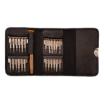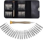 مجموعه 25 عددی از پیچ گوشتی دارای کیف چرمی زیبا و قابل حمل  با سری های قابل تعویض با کیفیت بسیار بالا می باشد. از این ابزار می توان در تعمیرات ساعت و دوربین و انواع گوشی های موبایل، گجت ها و کلیه تعمیرات ظریف و حساس با دقت بالا استفاده  که  کلیه سری ها دارای خاصیت آهنربایی می باشند.