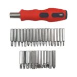 پیچ گوشتی همه کاره 31 تکه طرح نمکدانی مدل P- 6036B ، یکی از ابزاری کاربردی که از آن در باز و بسته کردن انواع پیچ های کوچک به کار رفته در لوازم الکترونیک و دیجیتال نظیر: موبایل، تبلت، لپ تاپ، کامپیوتر، ساعت و… میتوان استفاده کرد. پیچ گوشتی همه کاره 31 تکه نمکدانی مدل P- 6036B شامل 30 سری متنوع و 1 دسته پیچ گوشتی با سری آهنربایی می باشد.از مهمترین ویژگی پیچ گوشتی 31 تکه می توان به سایز کوچک، وزن سبک و در نهایت کارکرد متنوع آن اشاره کرد. جهت استفاده از پیچ گوشتی همه کاره 31 تکه نمکدانی مدل P- 6036B کافی است ابتدا درب محافظ و شفاف روی پکیج را به صورت پیچی باز کرده و دسته پیچ گوشتی را از قسمت میانی پکیج خارج نمائید. سپس سری مورد نظر خود را بر روی پیچ گوشتی قرار دهید. به علت داشتن خاصیت آهنربایی ، سری و دسته پیچ گوشتی به آسانی به یکدیگر متصل می شوند.