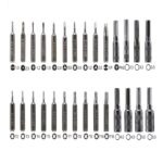 مجموعه ۳۸ عددی ابزار تعمیرات موبایل و لپ تاپ فولاد Cr-V + دسته PVC روکش دار انواع سرس دو سو چهار سو ستاره سه پر پنج پر مثلثی سریهای تی پنس انتی استاتیک تاچ کش ال سی دی قاب باز کن ست تعمیرات مخصوص گوشیهای اپل – سامسونگ – اچ تی سی -ایکس باکس – لب تاب – کامپیوتر- مک بوک ایر